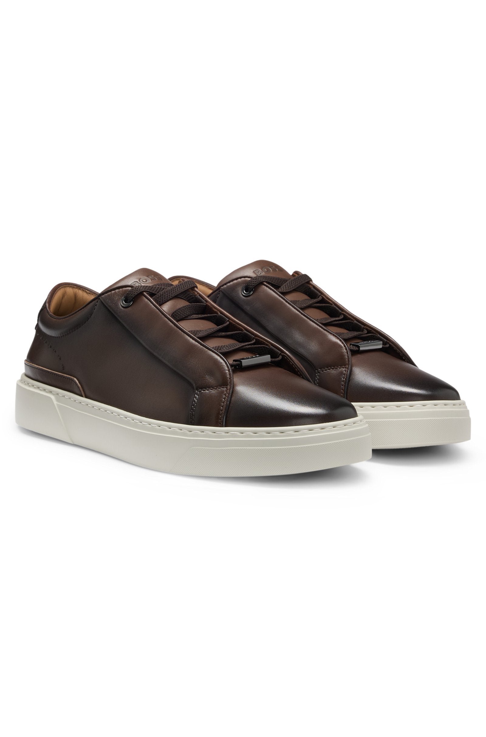 Confeccionadas en Italia con cuero de alta calidad, estas zapatillas BOSS Menswear tienen un estilo limpio para completar cualquier conjunto. Cordones ocultos con un lazo clásico de marca.