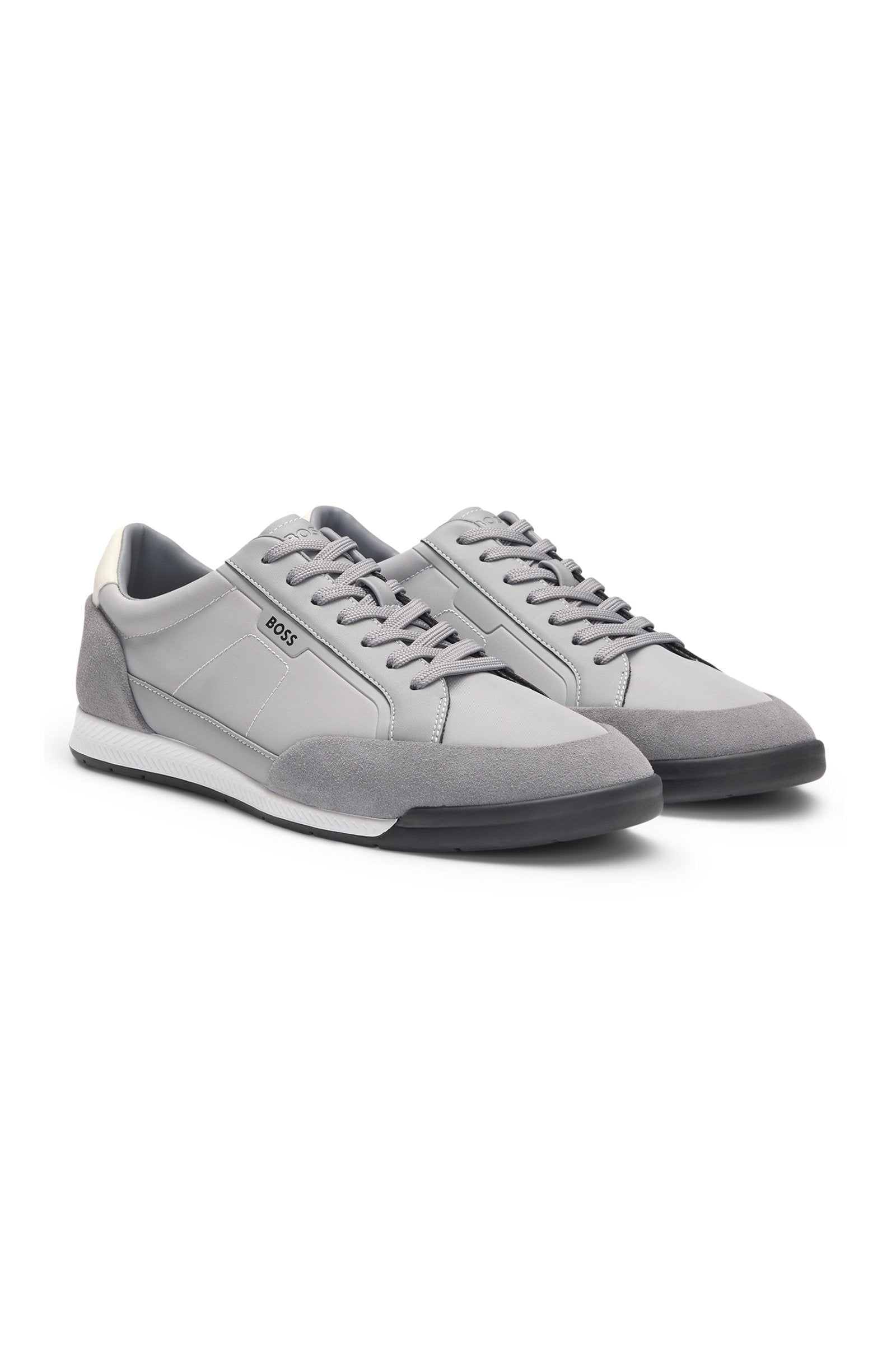 With subtle logo details, these BOSS Menswear trainers are an easy option for everyday wear. Mix of suede and synthetic coated fabric. Synthetic coated fabric, sometimes referred to as faux leather, is a fabric designed to resemble real leather, and/or display a matte, glossy, smooth, or textured, coated appearance.