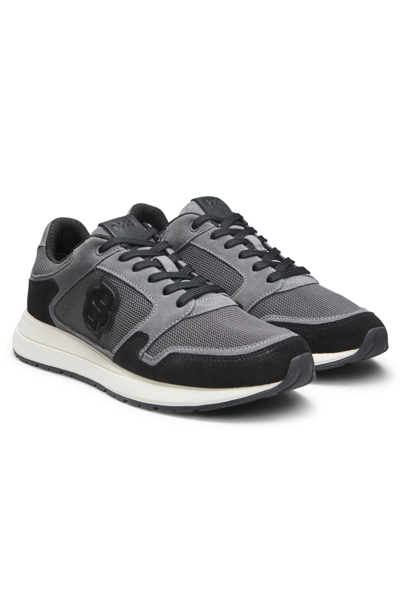 In soft suede combined with breathable mesh, these BOSS Menswear trainers bring refined style with their Double B monogram trim. Supportive EVA-rubber outsole.